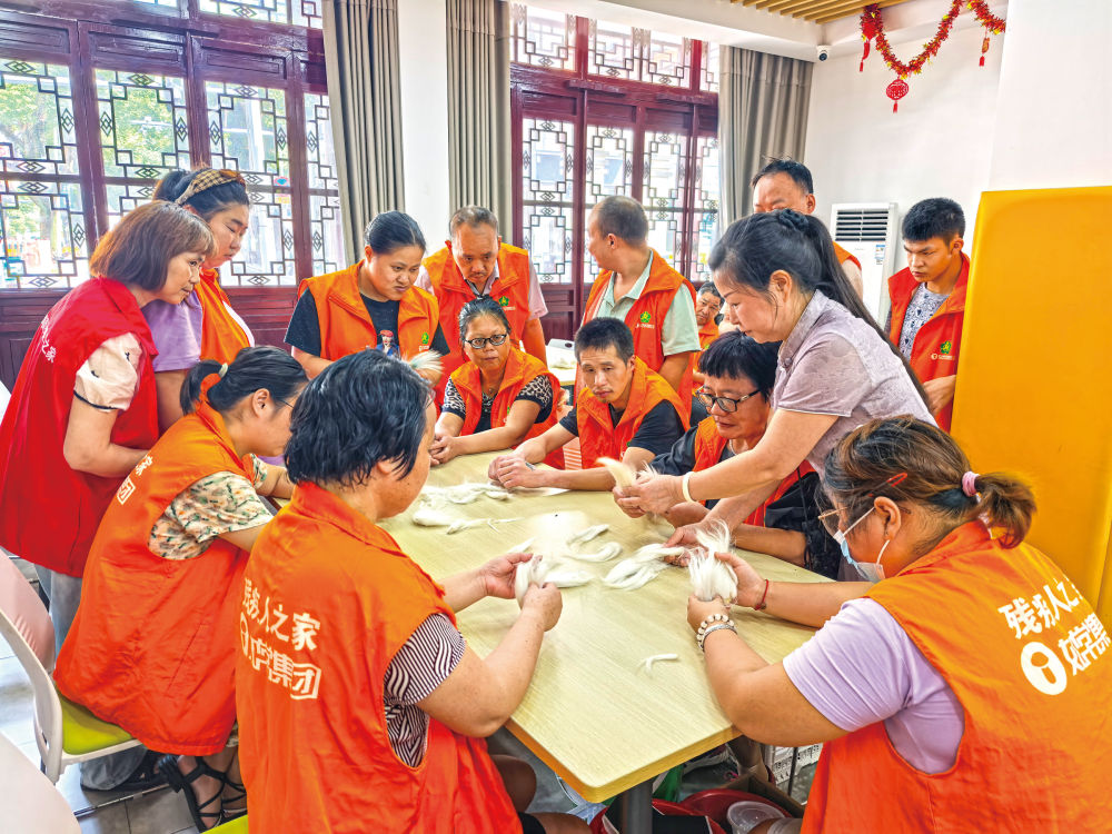 范玲英还带领团队开展“上门授艺”服务,60余名残障人士足不出户就能掌握制笔技艺,在照顾家庭的同时也能增加收入,重拾生活的尊严。2024年,孵化中心荣获国家级“美丽工坊”称号,成为照亮残疾女性前行路上的一盏明灯。截至目前,共举办培训100余场次,培训残疾人1000余人,其中残疾妇女430余人。