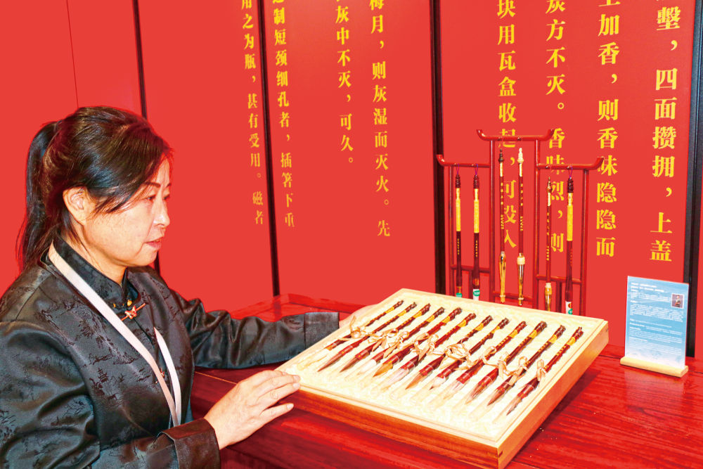 范玲英在深圳博览会推销善琏湖笔。受访者供图