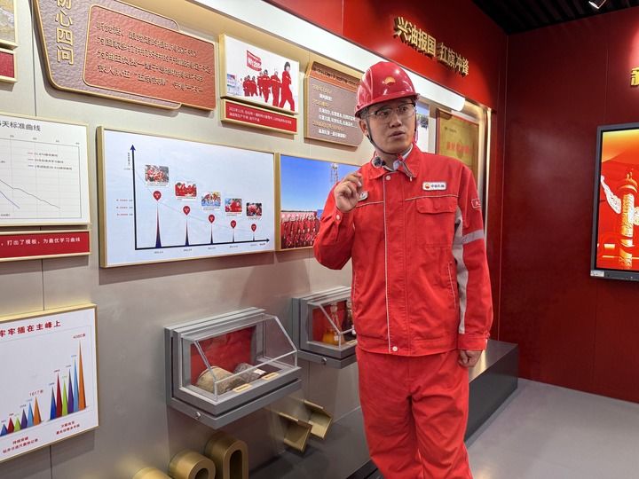 1205钻井队队长段永坚在队史室内介绍队伍发展历程。新华每日电讯记者孙晓宇 摄