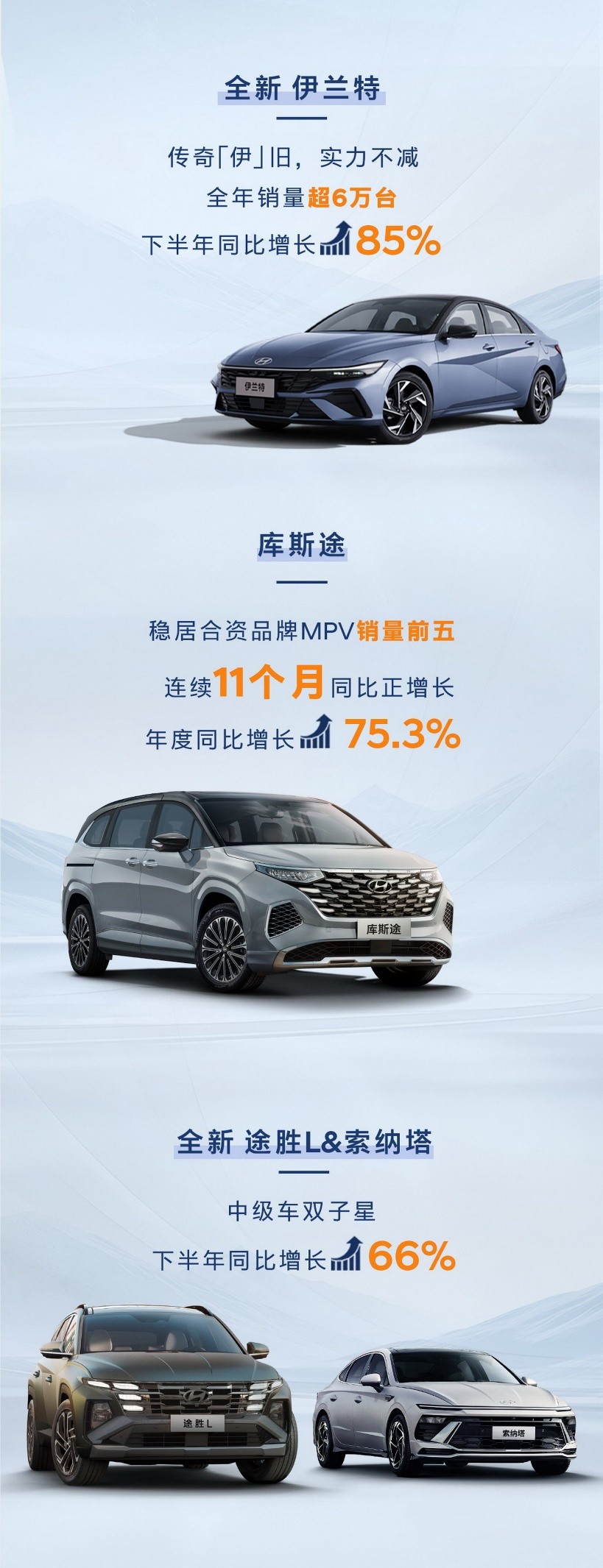 数据显示,“燃油+新能源、国内+海外”的立体化业务体系,构成了北京现代稳健经营的压舱石。面对变革趋势,北京现代采取了务实稳健的“油电共举”发展策略。一方面,燃油车基本盘稳固,明星车型持续贡献稳定销量:库斯途稳居国内合资MPV销量前五,索纳塔与途胜L组成的“中级车双子星”下半年销量同比增长66%,成为品牌在中高端市场的重要支撑。另一方面,企业电动化转型迈出关键一步,首款基于全球纯电平台E-GMP打造的SUV——EO羿欧于2025年底上市,为品牌注入了全新的发展活力。