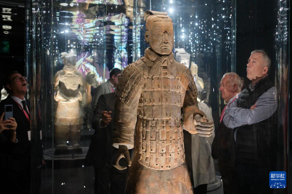 “中国秦汉文明的遗产”展从3月29日至明年1月28日面向公众开放。展览分为三个展厅,分别展示了秦始皇统一中国的历史、秦始皇陵以及神秘的兵马俑。博物馆通过光影、音乐、甚至气味方面的精心设计,使用先进科技手段打造出沉浸式的展示空间。