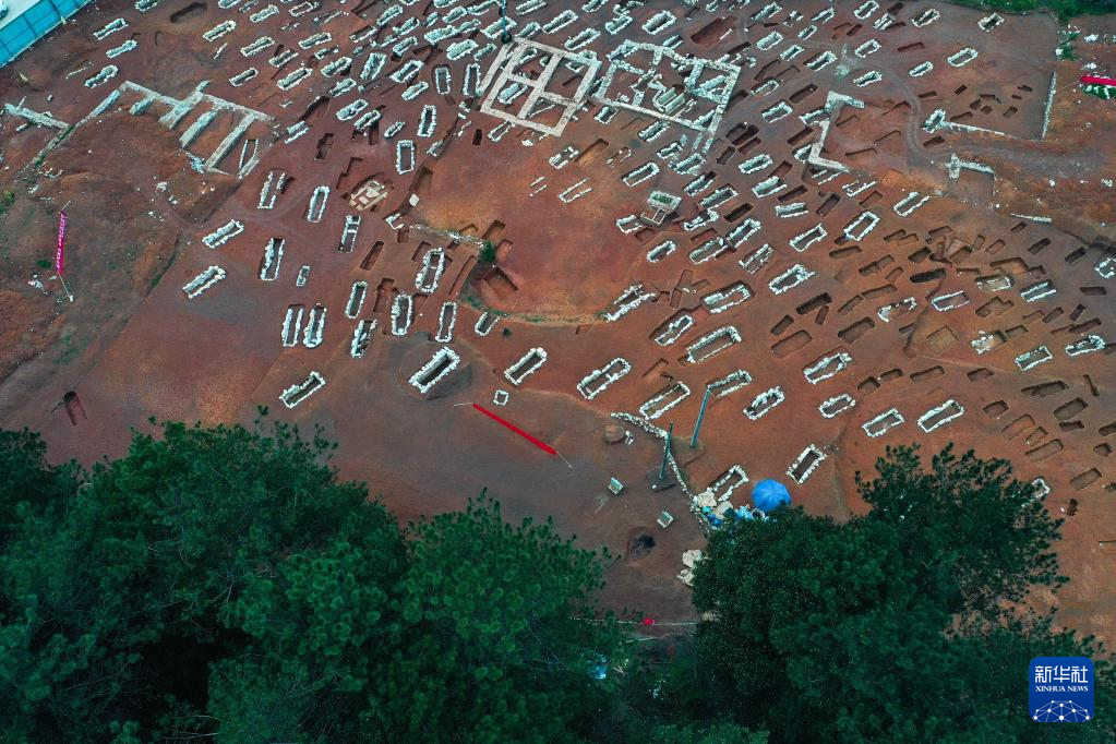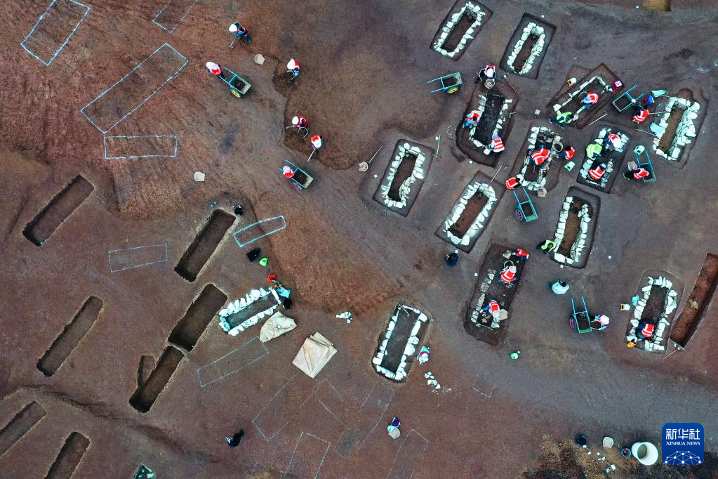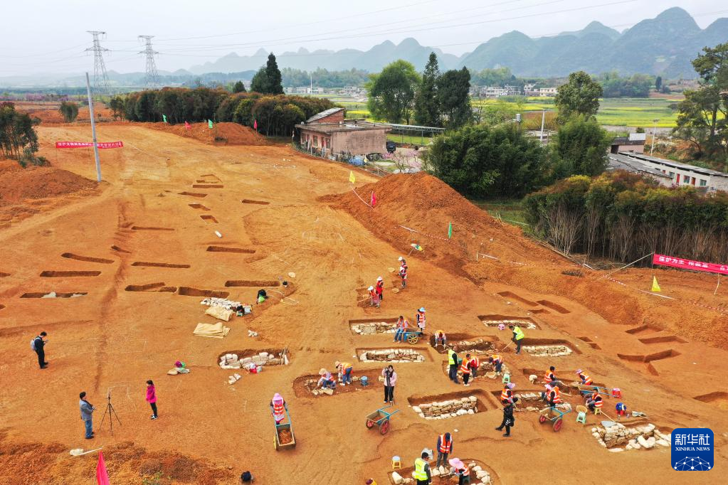 3月30日拍摄的贵州贵安新区大松山墓群挖掘现场(无人机照片)。