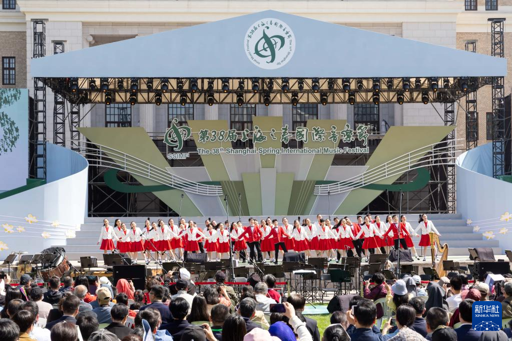 当日,第38届上海之春国际音乐节闭幕。上海城市草坪音乐广场上举行了音乐节闭幕展演。