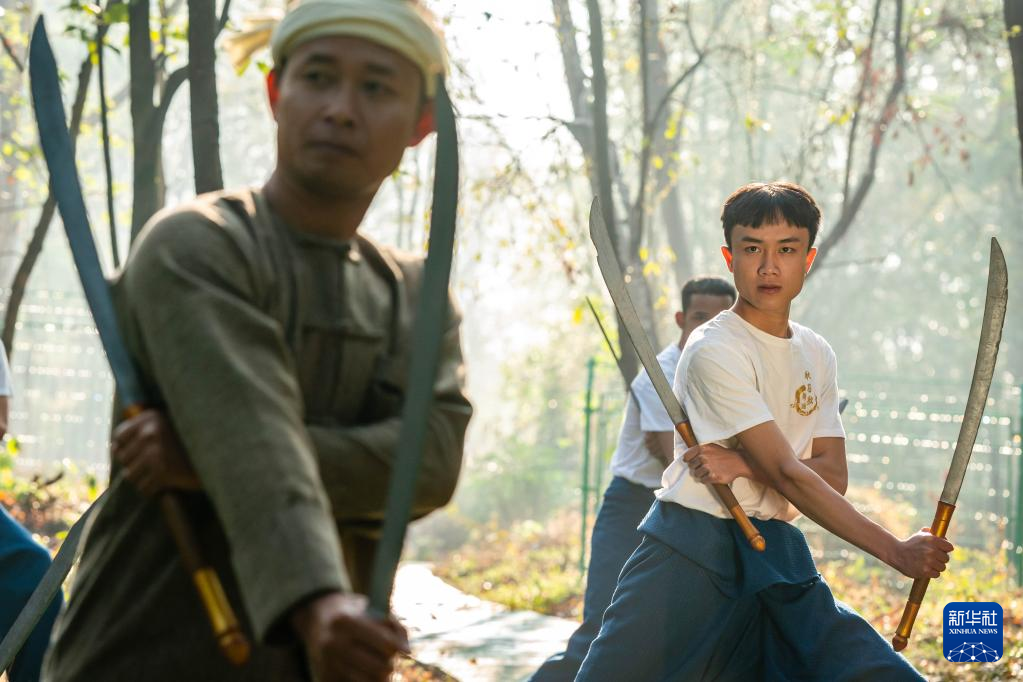 耿马县民族歌舞团的演员们在练习刀舞(无人机照片,3月23日摄)。