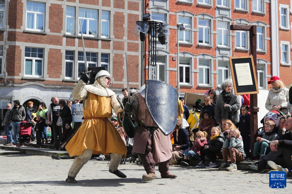 4月15日,身着古装的演员在比利时那慕尔市传统民俗日活动上表演。