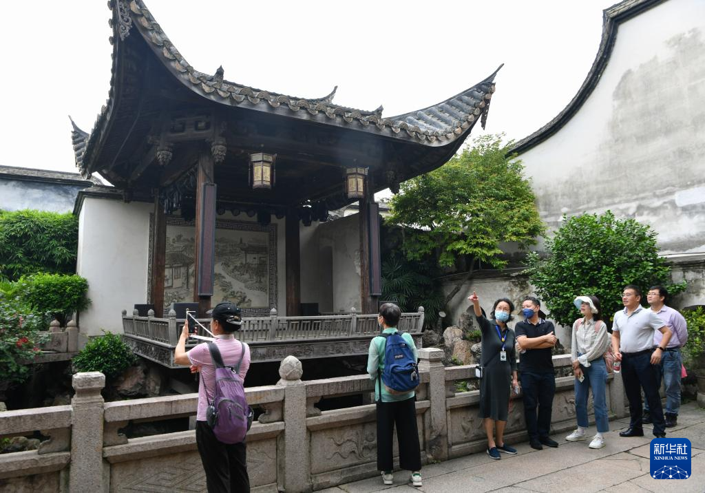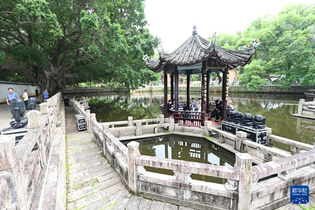 游客在位于福州三坊七巷历史文化街区的全国重点文物保护单位水榭戏台参观(5月16日摄)。