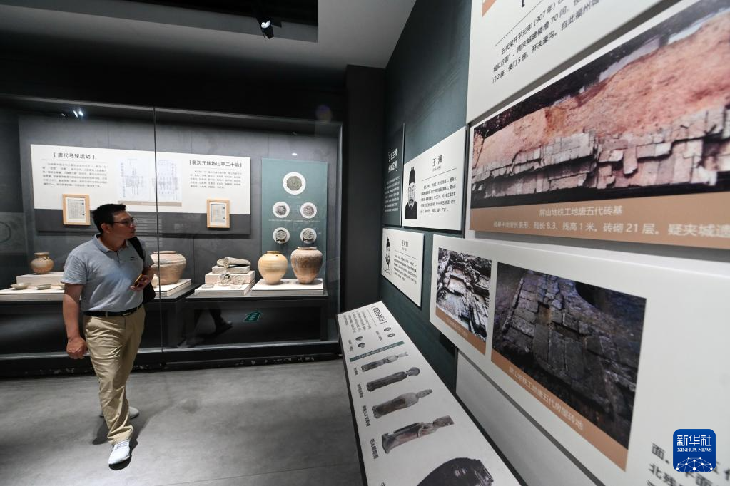 游客在福州冶山春秋园的考古发掘区唐代马球场遗址参观(5月16日摄)。