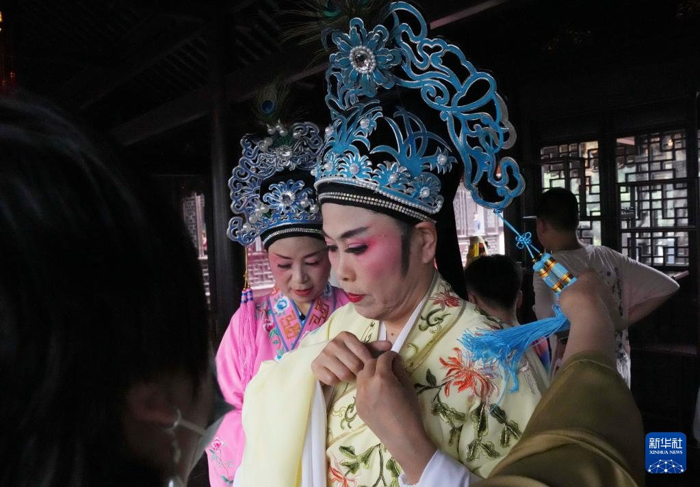 5月21日,在盛泽镇先蚕祠,演员在准备演出。