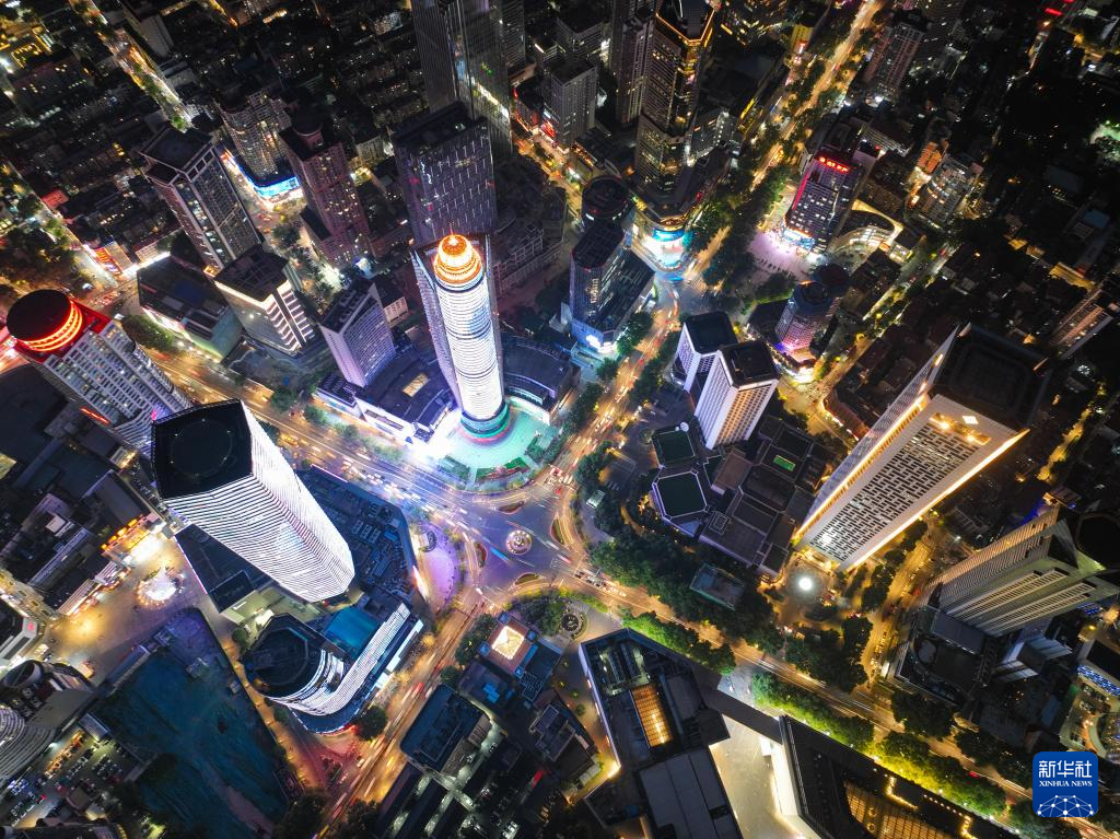 江苏南京新街口夜景(6月12日摄,无人机照片)。