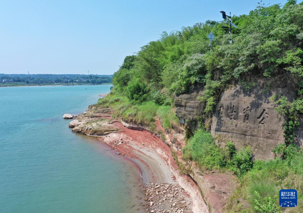 这是6月27日拍摄的神臂城周边岩壁上的题刻(无人机照片)。“公实生我”摩崖题刻,夏天涨水的时候,字被洪水淹没,退水的时候,字又露出来,至今保存比较完好。