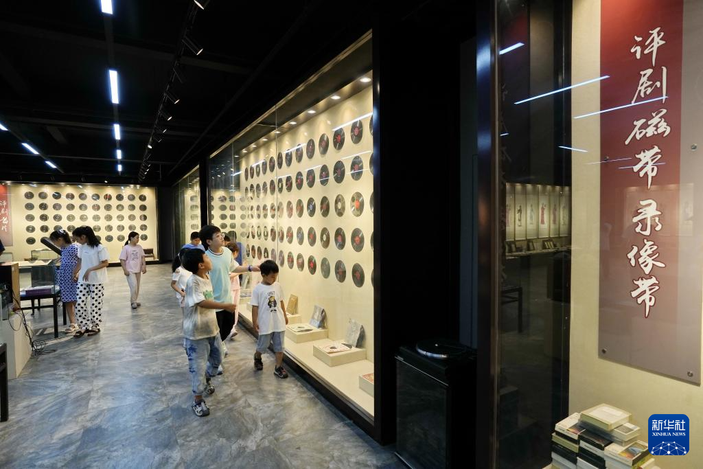 7月21日,孩子们在位于河北省滦州市的中国评剧艺术馆内了解评剧知识。
