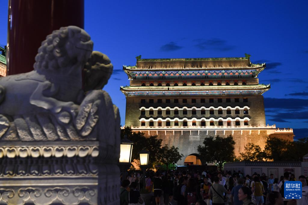 不久前修缮完成的永定门城楼(7月10日摄)。