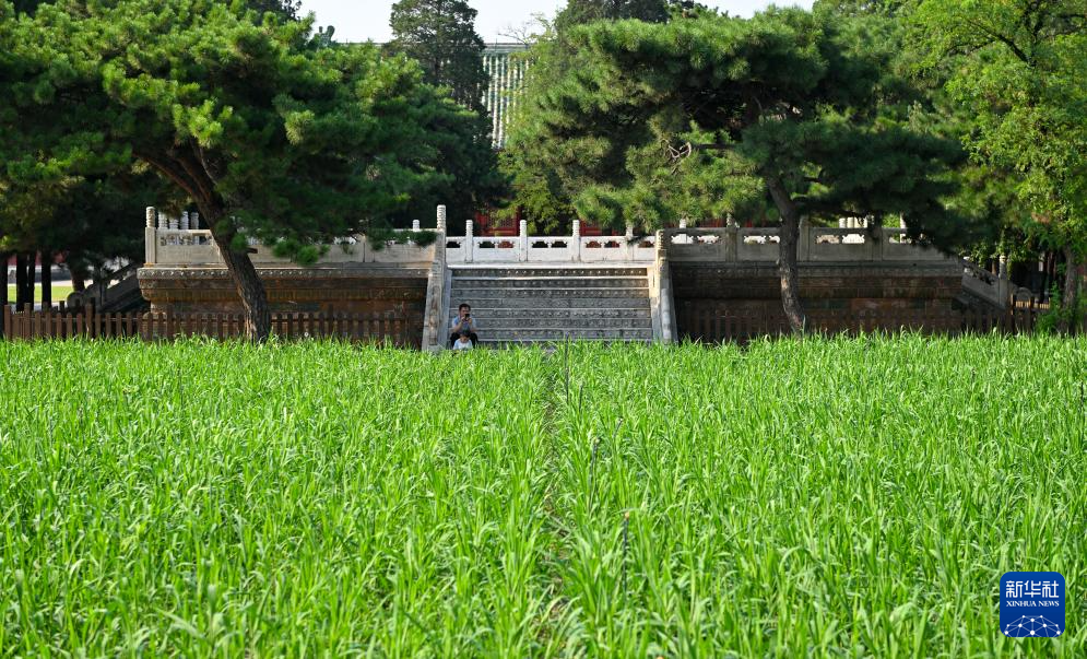 先农坛明清耤田里作物长势喜人(7月19日摄)。先农坛始建于明永乐十八年(1420年),是明清两代帝王祭祀先农神和举行亲耕典礼的场所。