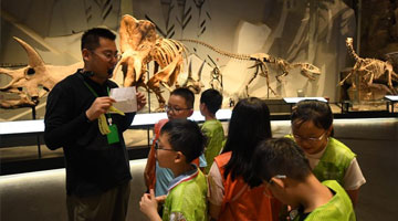 7月31日,在第31届全国图书交易博览会上,小读者在体验互动游戏。