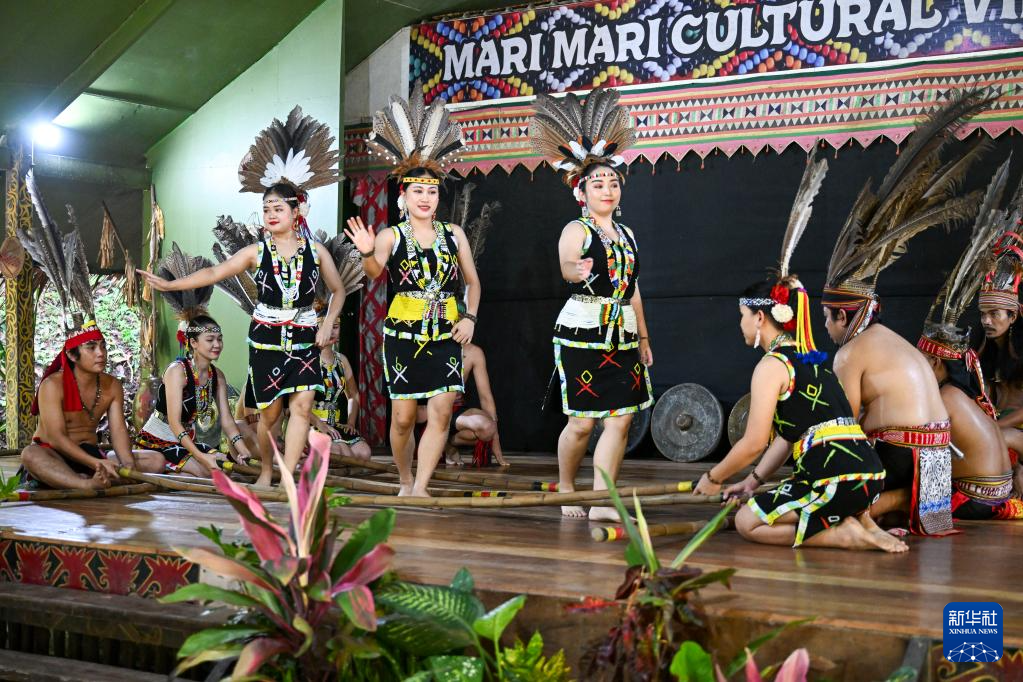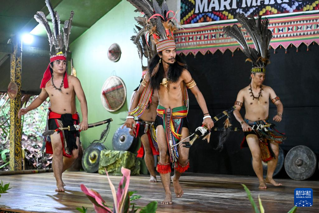11月14日,在马来西亚沙巴州的马里马里文化村,原住民身着特色服饰进行舞蹈表演。