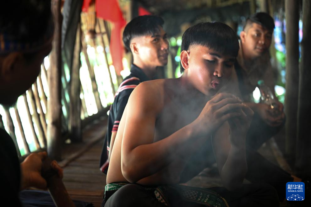 11月14日,在马来西亚沙巴州的马里马里文化村,一名男子展示传统生火方式。