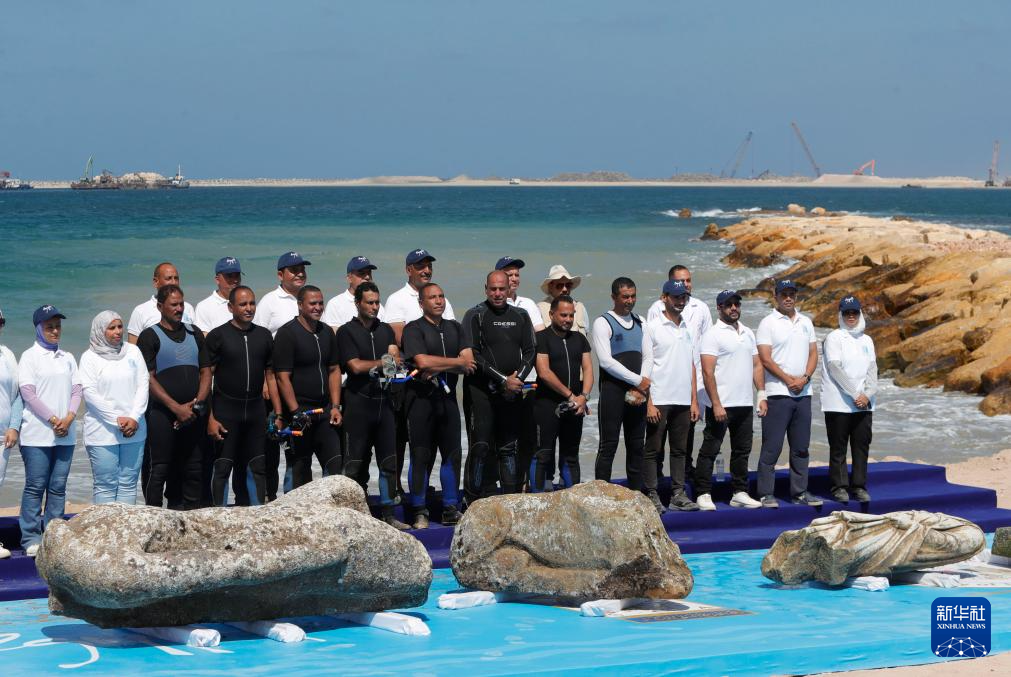 当日,埃及旅游和文物部在亚历山大附近的阿布基尔湾地中海水域打捞出三件大型石刻雕像,包括一尊残缺的狮身人面像、一尊断颈断膝的托勒密时代晚期人物雕像,以及一尊白色的罗马贵族大理石雕像。