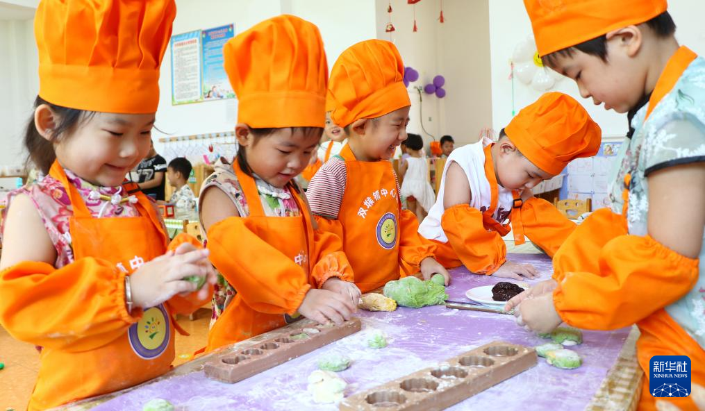 8月26日,在山东省青岛市城阳区河套街道西河套社区,小朋友学做七夕巧果。