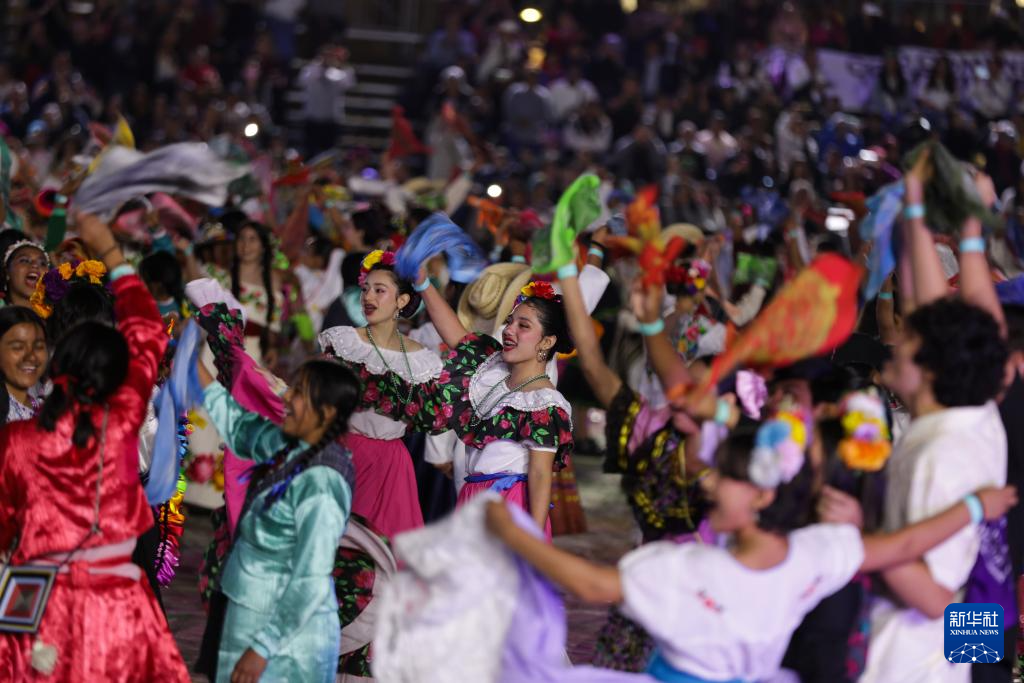 这是11月22日在墨西哥首都墨西哥城宪法广场拍摄的语言文化节活动现场。
