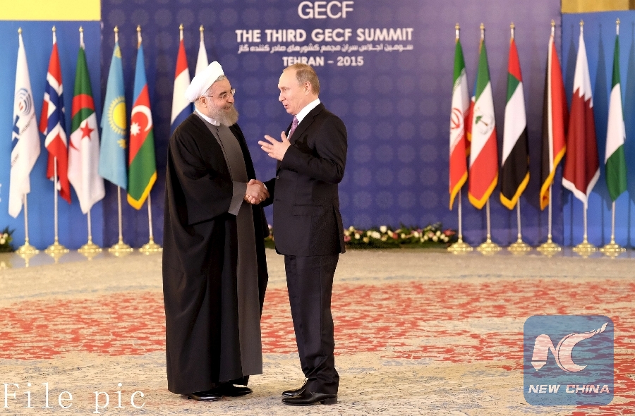 Iran's President Hassan Rouhani (L) welcomes Russia's President Vladimir Putin during the Gas Exporting Countries Forum (GECF) in Tehran November 23, 2015. (Reuters photo)