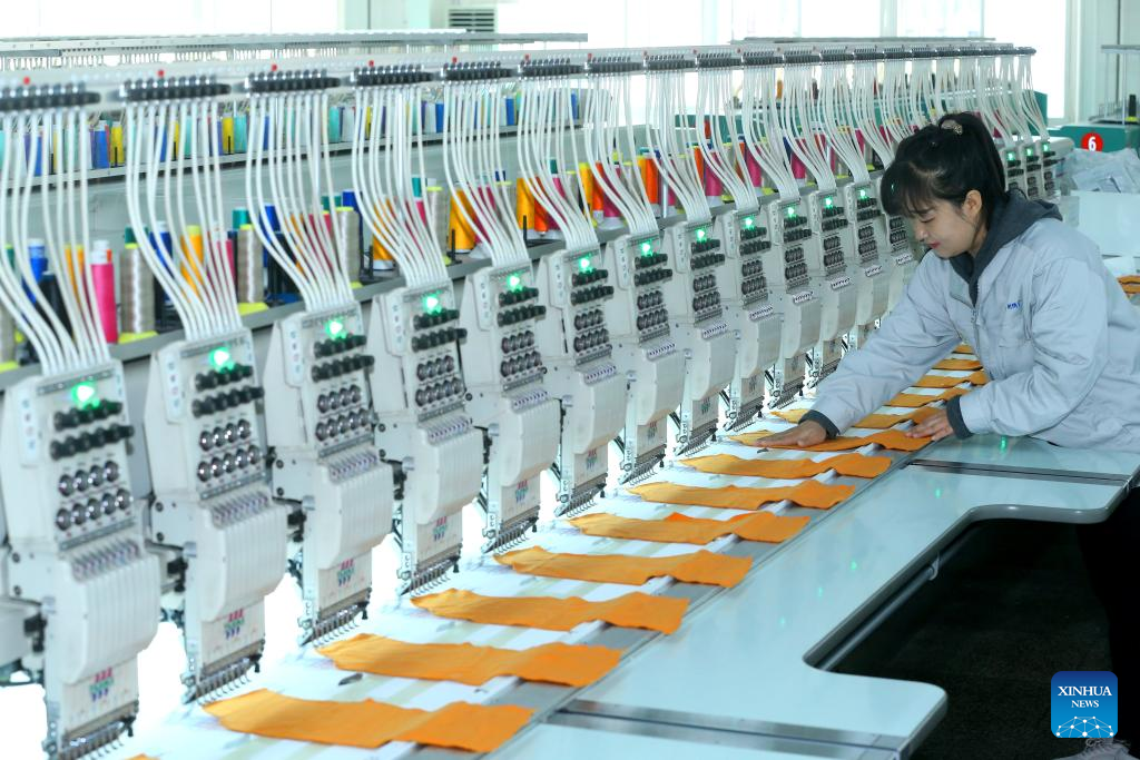 A worker makes embroidered clothing at a company in Qingdao, east China's Shandong Province, Dec. 15, 2025. (Photo by Liang Xiaopeng/Xinhua)