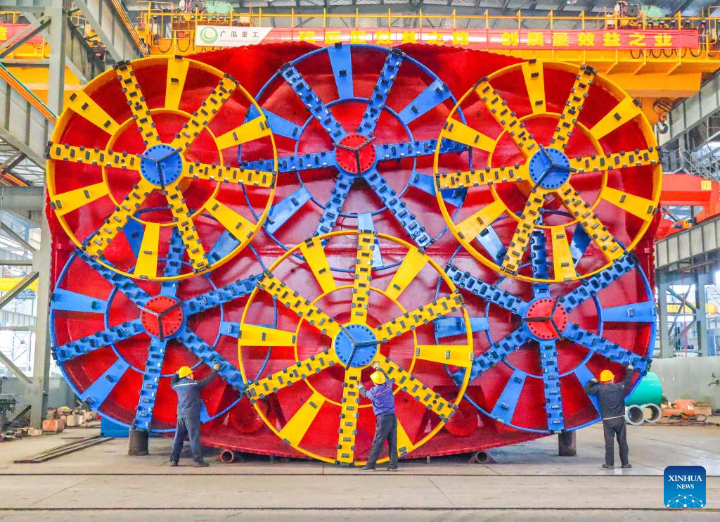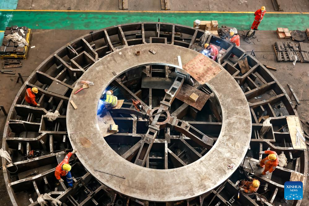 Workers assemble a tunnel boring machine at a manufacturing base of China Railway Science & Industry Group in Wuhan, central China's Hubei Province, Dec. 15, 2025. (Photo by Zhao Jun/Xinhua)