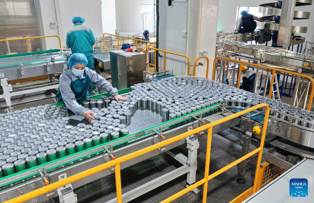 Workers are seen on a pet food production line of a pet food industrial park in Linyi, east China's Shandong Province, Dec. 15, 2025. (Photo by Wang Yanbing/Xinhua)