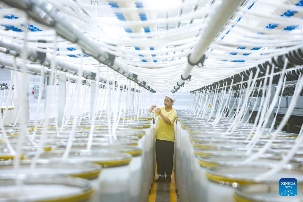 A worker is seen at the smart workshop of a textile company in Taizhou, east China's Jiangsu Province, Dec. 15, 2025. (Photo by Gu Jihong/Xinhua)