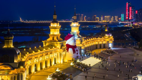 In pics: giant snowman at Qunli music park in Harbin