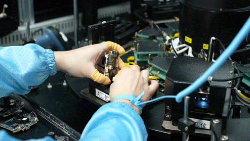 在海康威视全自动镜头模组生产线上