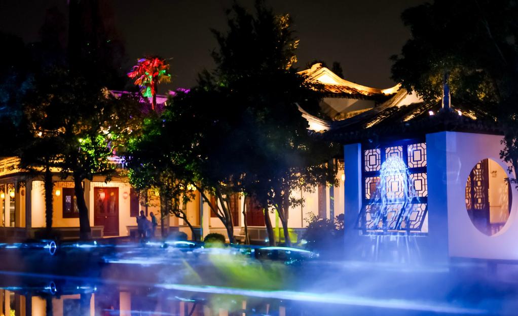 灯光是古镇“夜经济”的一抹亮色。今年国庆中秋假期,朱家角古镇推出的“最江南”沉浸式文化季中,课植园的光影秀成为“必打卡”项目。
