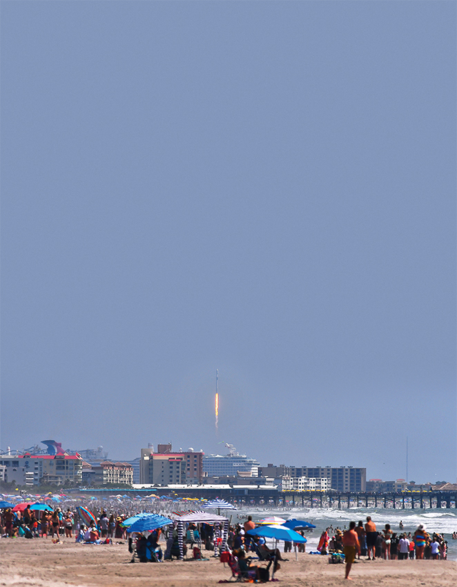 202371日,在美国佛罗里达州可可比奇,人们观看搭载欧几里得空间望远镜的猎鹰9”火箭发射升空 新华社/美联