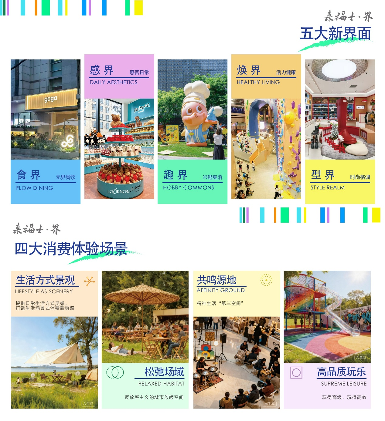 来福士·界产品线定位城市级综合体,位于城市核心区域,面向追求生活品质的消费者。传承来福士品牌DNA,来福士·界呈现“五大新界面 × 四大消费体验场景”,以多元体验塑造城市新地标。