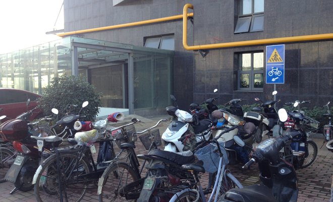 此外,記者還觀察到,小區(qū)內(nèi)部自行車(chē)、電動(dòng)車(chē)的亂停亂放十分嚴(yán)重。業(yè)主陳先生告訴記者:“這一問(wèn)題已經(jīng)多次和物業(yè)方交涉過(guò),物業(yè)也貼出了提醒告示,但效果甚微,有的業(yè)主甚至眼看車(chē)庫(kù)在眼前,卻依舊把車(chē)在路面上亂停亂放。希望物業(yè)以后在這方面能有所改善。”