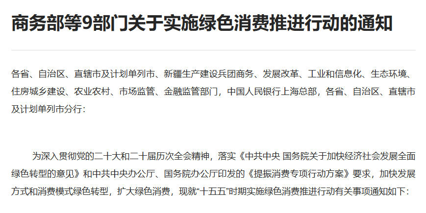 九部門發(fā)文實(shí)施綠色消費(fèi)推進(jìn)行動(dòng)