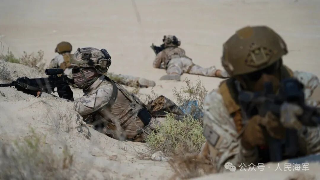 ▲中沙双方参训队员协同向目标区域隐蔽渗透