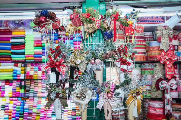义乌商城B区“嘉轩织带”摊位内,丝带产品琳琅满目。新华网梁栋飞 摄