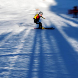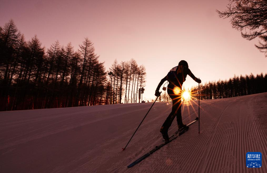 11月19日,在个人越野赛中,次旦玉珍在转换区撕下雪板上的止滑带,准备下滑。她以54分27秒22的成绩夺得女子组冠军。
