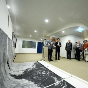 11月21日,在瑞士伯尔尼,人们参观“纸语千年·艺韵华章——中国当代纸本艺术国际巡展(瑞士站)”。