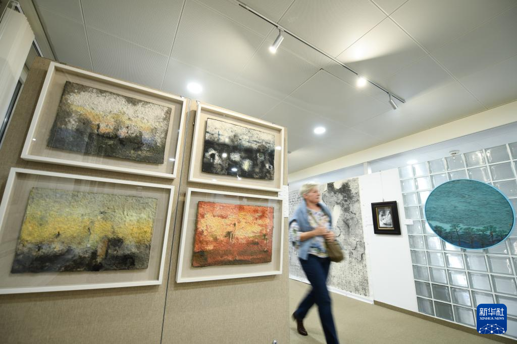 11月21日,在瑞士伯尔尼,一名女子参观“纸语千年·艺韵华章——中国当代纸本艺术国际巡展(瑞士站)”。