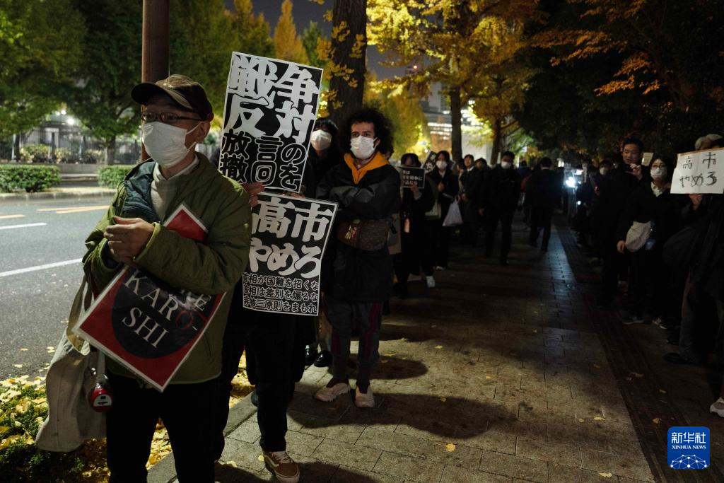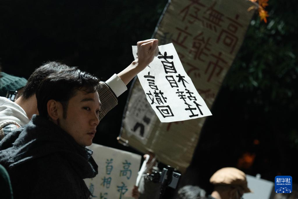 数百名日本民众21日晚在位于东京的首相官邸前举行集会,抗议日本首相高市早苗近日在国会发表的涉台错误言论,要求其撤回相关表态并作出解释和道歉。