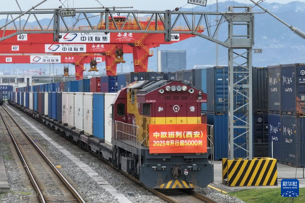 11月17日上午,装载着汽车配件、光伏组件、跨境电商货物的X9043次中欧班列(西安)驶出西安国际港站,驶向阿塞拜疆首都巴库。根据国铁集团提供的数据显示,2025年1至10月,中欧班列(西安)累计开行5063列,同比增长16.3%,首次实现年度前10个月开行量突破5000列大关,创历年同期最高纪录。开行量、货运量、重箱率等核心指标持续稳居全国前列。