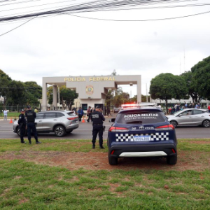 11月22日,军事警察在巴西首都巴西利亚联邦警察局门外警戒。