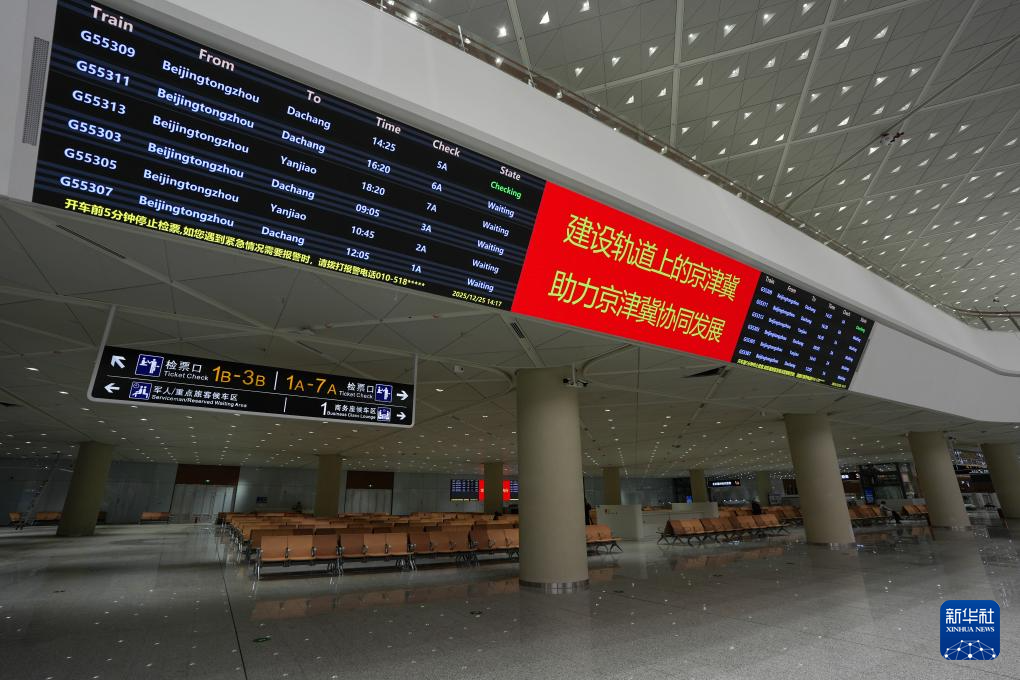 12月25日拍摄的北京通州站内候车区域。