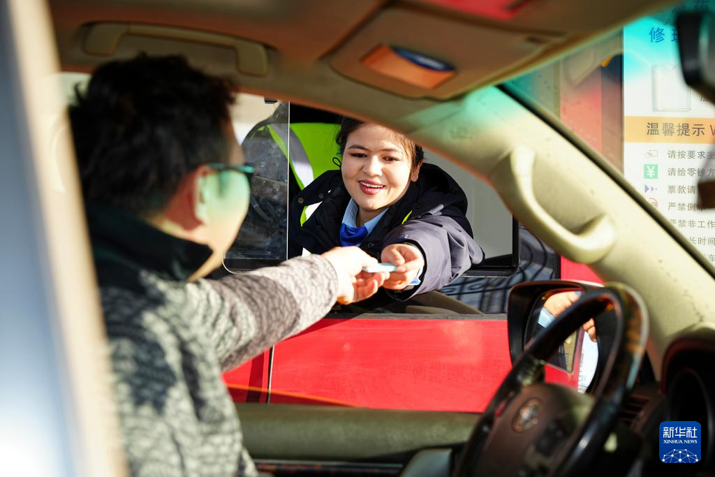 12月26日,在乌尉高速公路永丰收费站,工作人员向驾驶员发放通行卡。