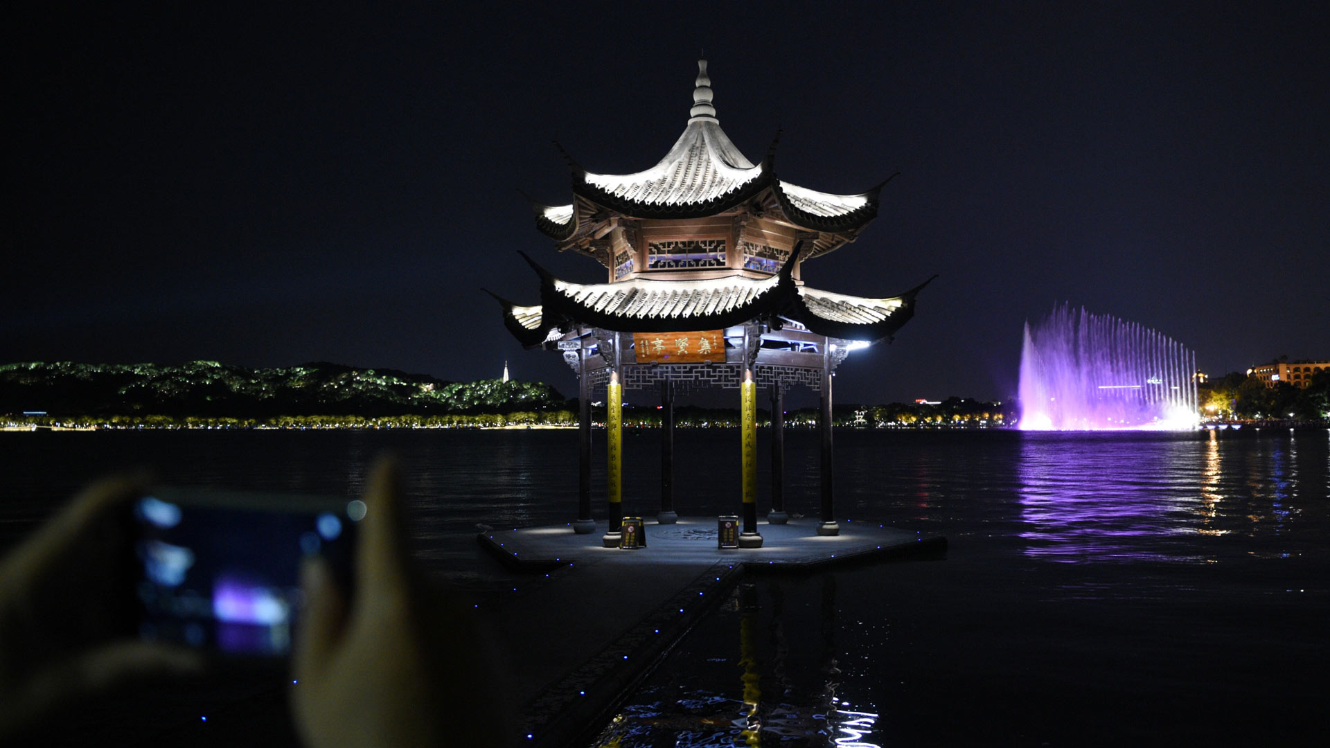 這是在杭州西湖拍攝的夜景(8月30日攝)。 新華社記者陳建力攝