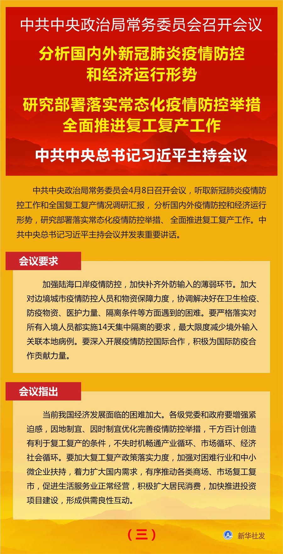 圖表:中共中央政治局常務(wù)委員會召開會議 分析國內(nèi)外新冠肺炎疫情防控和經(jīng)濟運行形勢 研究部署落實常態(tài)化疫情防控舉措全面推進復工復產(chǎn)工作 中共中央總書記習近平主持會議(三) 新華社發(fā)