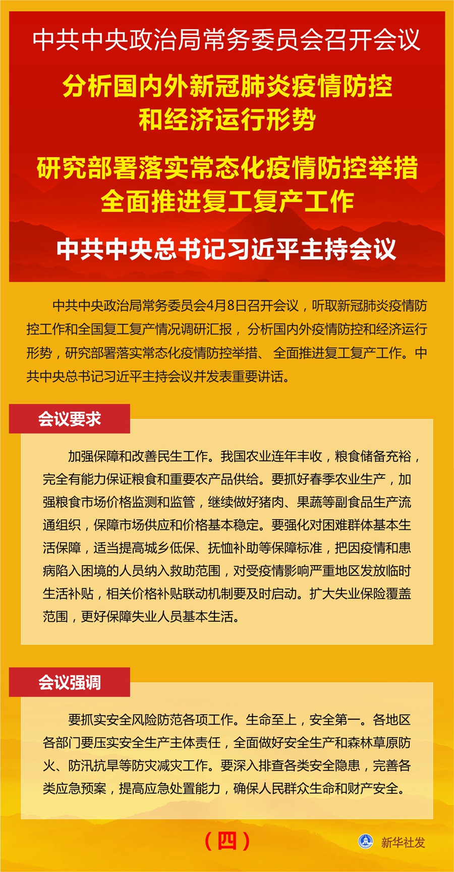 圖表:中共中央政治局常務(wù)委員會(huì)召開(kāi)會(huì)議 分析國(guó)內(nèi)外新冠肺炎疫情防控和經(jīng)濟(jì)運(yùn)行形勢(shì) 研究部署落實(shí)常態(tài)化疫情防控舉措全面推進(jìn)復(fù)工復(fù)產(chǎn)工作 中共中央總書(shū)記習(xí)近平主持會(huì)議(四) 新華社發(fā)