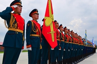 - 千人軍樂(lè)團(tuán)、合唱團(tuán)助威勝利日大閱兵