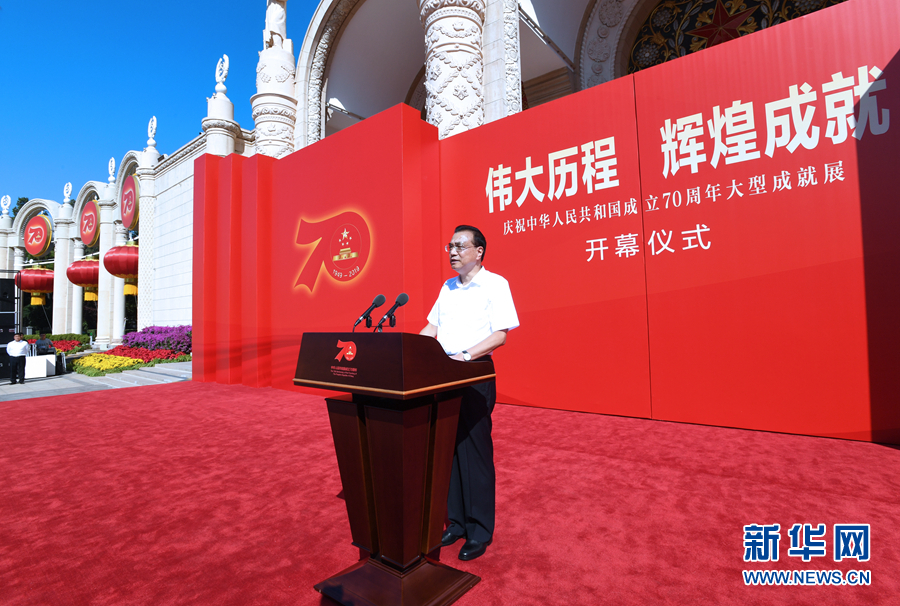 9月23日,“偉大歷程 輝煌成就——慶祝中華人民共和國(guó)成立70周年大型成就展”開幕式在北京展覽館舉行。中共中央政治局常委、國(guó)務(wù)院總理李克強(qiáng)出席開幕式并講話。 新華社記者 饒愛民 攝